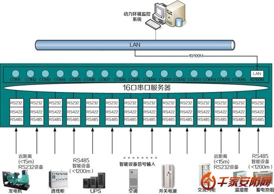 跟著1~16口多串口服務(wù)器的完善及遍及,新的動環(huán)監(jiān)控系統(tǒng)運(yùn)用其替代計算機(jī)多串口卡的運(yùn)用,處置了被監(jiān)控設(shè)備與監(jiān)控主機(jī)遠(yuǎn)間隔布線的麻煩,將現(xiàn)場RS232/RS422/RS485設(shè)備接入多串口服務(wù)器,經(jīng)多串服務(wù)器TCP/IP網(wǎng)絡(luò)傳送至監(jiān)控主機(jī),傳輸間隔不受布線約束,并可節(jié)約布線。其完結(jié)的功用與多串口卡的功用類似,將串口數(shù)據(jù)網(wǎng)絡(luò)打包,通明傳輸?shù)奖O(jiān)控主機(jī)。
