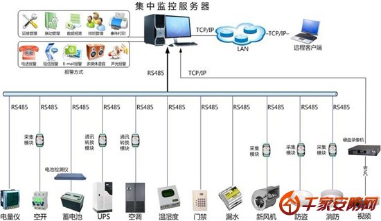 如下圖所示:各動力設(shè)備智能通訊口(RS232/RS422/RS485)或許增加的收集模塊經(jīng)過工程布線引至工控機(jī)(運(yùn)行動力監(jiān)控系統(tǒng)收集程序的電腦),由工控機(jī)完結(jié)協(xié)議解說及數(shù)據(jù)處置。