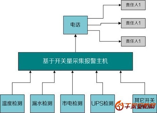 前期動環(huán)監(jiān)控系統(tǒng)選用單節(jié)點非聯(lián)網(wǎng)型監(jiān)控系統(tǒng),各節(jié)點獨立作業(yè),只能對機(jī)房簡便的參量進(jìn)行監(jiān)測:環(huán)境溫濕度、漏水、煙感、門磁、市電有無、重要配電開關(guān)等,基本上根據(jù)簡便的開關(guān)量及少數(shù)模擬量的監(jiān)測。監(jiān)控主設(shè)備在本地完結(jié)收集,經(jīng)過PSTN電話系統(tǒng)或許SMS短信系統(tǒng)將告警告訴機(jī)房負(fù)責(zé)人。