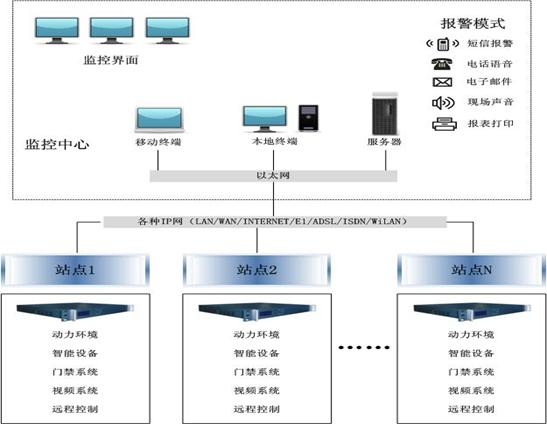 系統(tǒng)基于 TCP/IP 及 SNMP ,具有高度的集中管理理念,不僅能夠?qū)蝹€(gè)機(jī)房內(nèi)各種動(dòng)力設(shè)備與環(huán)境設(shè)備的各種狀態(tài)信息、報(bào)警信息、控制命令與歷史數(shù)據(jù)等進(jìn)行完整的集中監(jiān)控,并且能夠?qū)⒎植荚谌珖鞯氐亩鄠€(gè)機(jī)房實(shí)現(xiàn)跨區(qū)域的集中監(jiān)控。